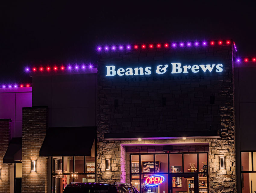 Let us help your business grow! With Trimlight’s Commercial lighting system, you can highlight any storefront or large commercial building. These bulbs are more than twice as bright as our residential line and allow any color combinations to complement your branding or events. On average, businesses with Trimlight see a 15-25% increase in revenue. Our system beautifully complements retail storefronts, medical offices, city buildings and more. Our Commercial System is designed specifically to attract attention to your business with beautiful, bright, attention demanding lights. Bring your business to life and stand out from the crown with our permanent programmable LED system